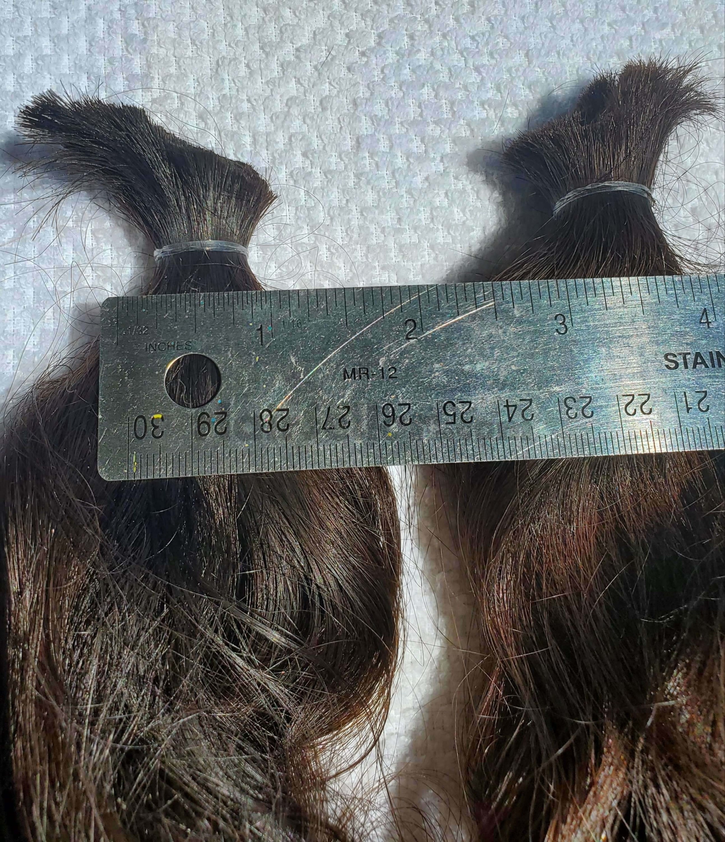 bundles 3/4ā³ thick each. Hair cut from 28 year old healthy non-smoking male of hispanic & Native American heritage. PayPal